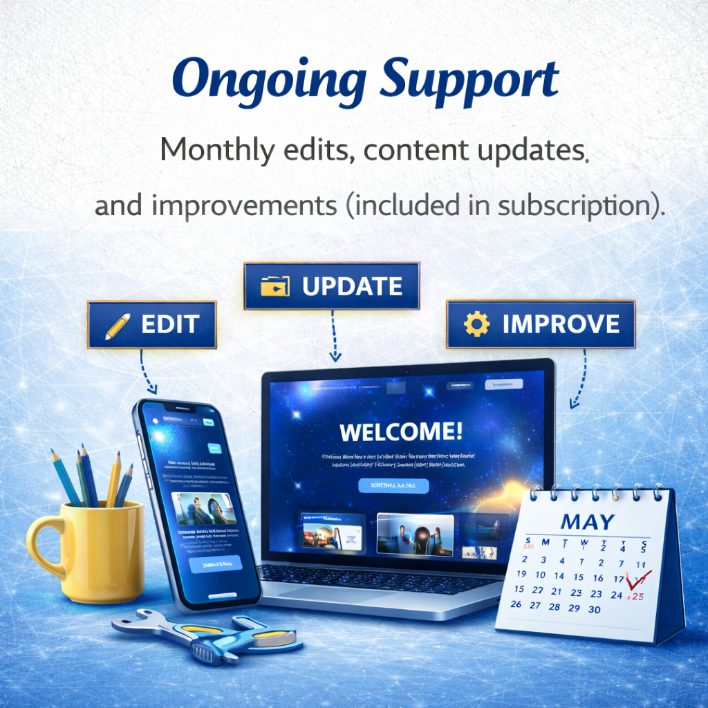 Monthly edits, content updates, and improvements (included in subscription).